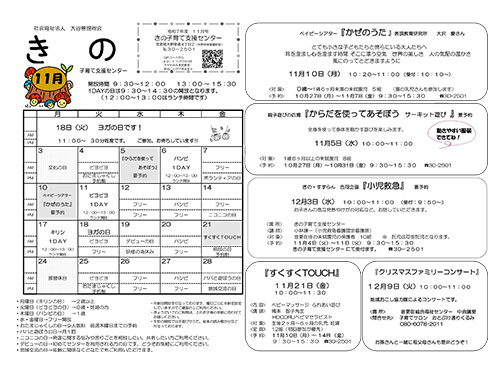| お問い合わせ先 | 「きの」子育て支援センター TEL:0155-30-2501 URL:https://ohtani-bodaiju.com/kinominami/kino_center/ |