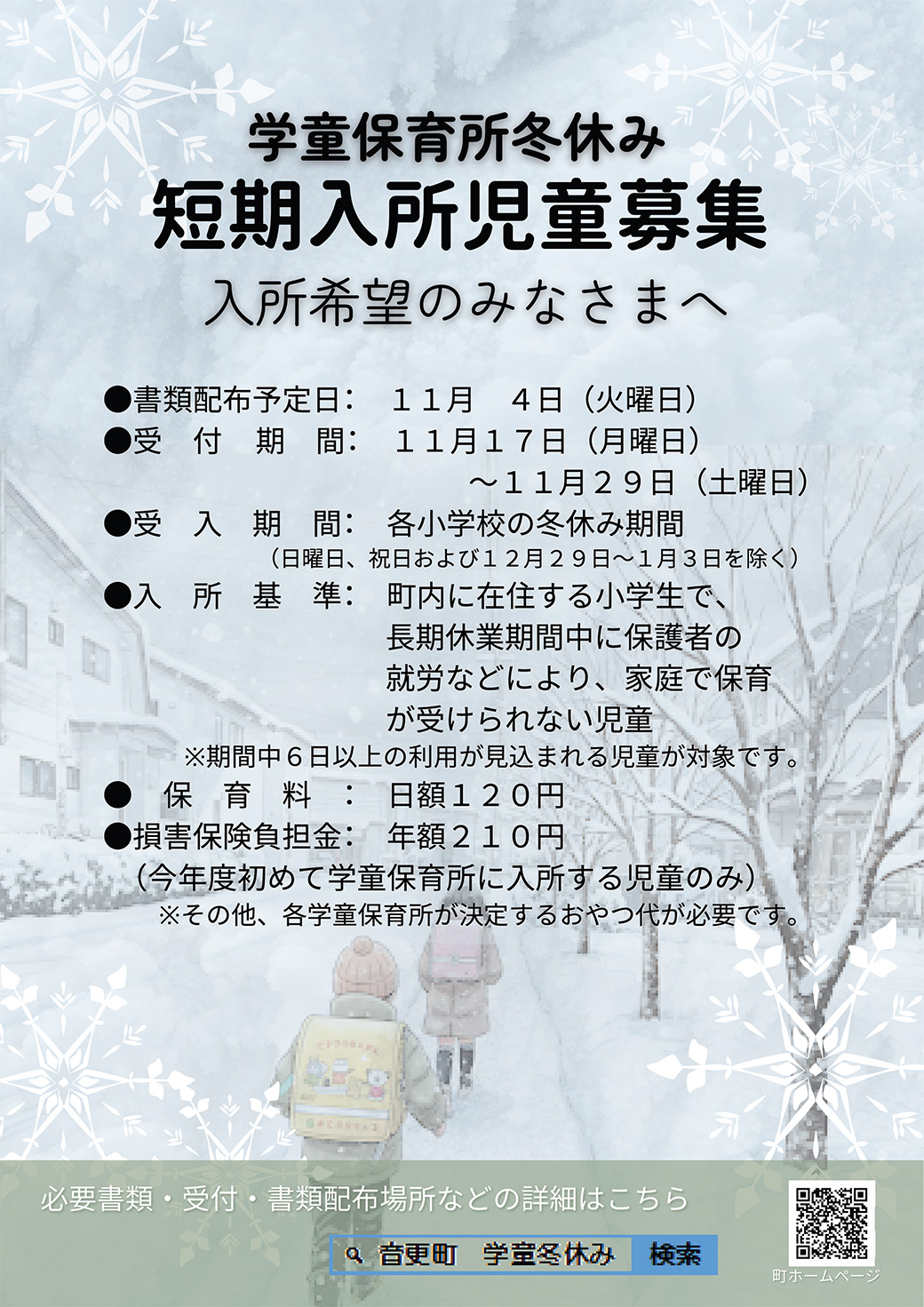 小学校の長期休業中のみ学童保育所に入所する児童を募集します。