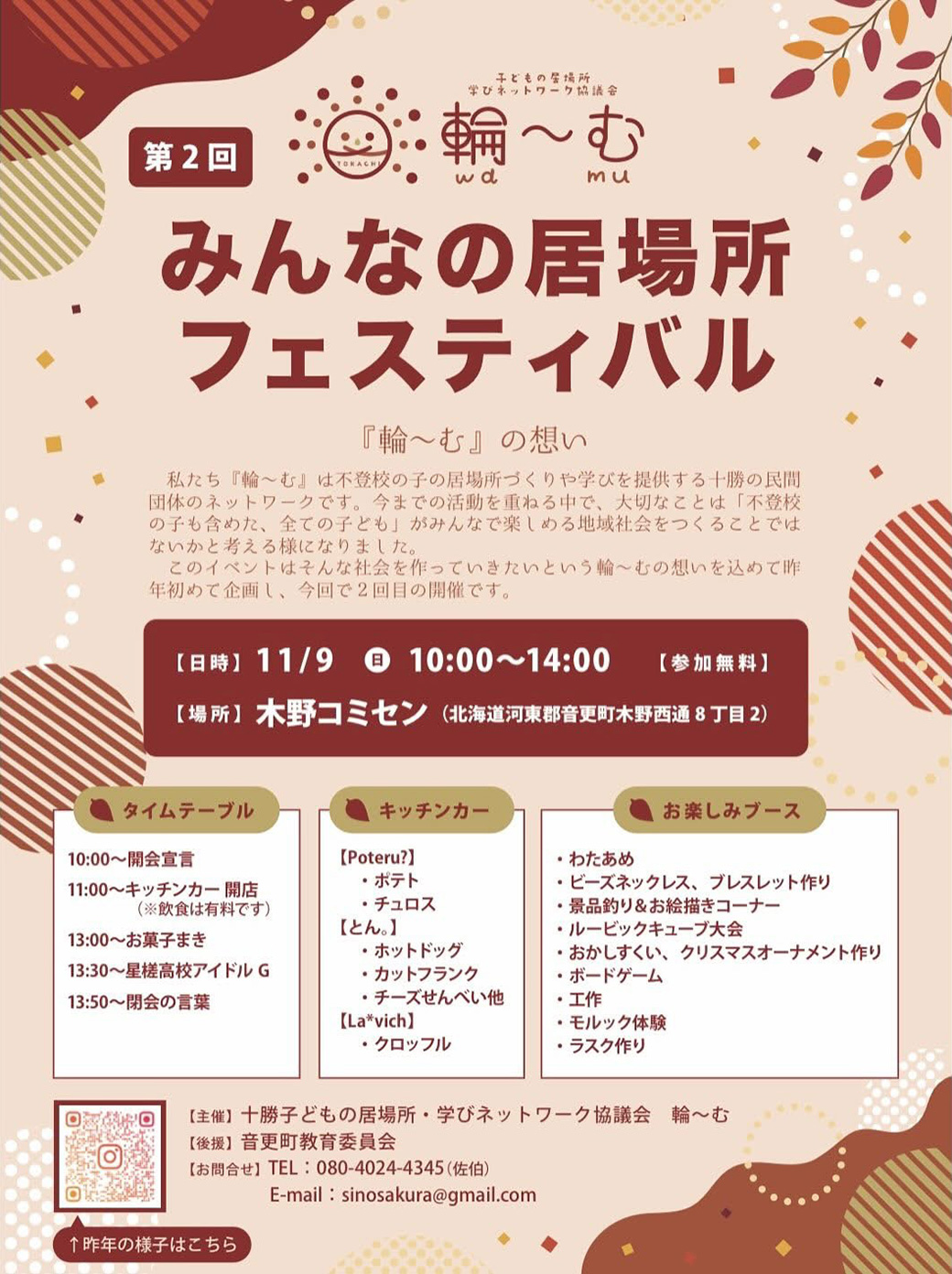 | 主催 | 十勝子どもの居場所・学びネットワーク協議会 輪~む |