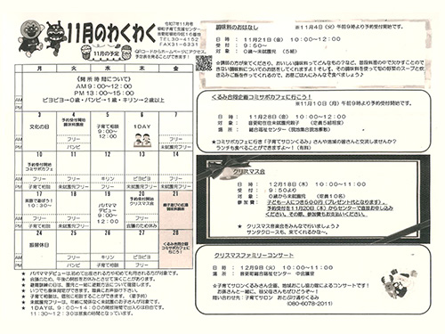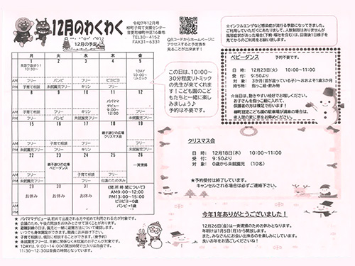 | 利用対象 | 妊婦さん、0歳~就学前児童と保護者の方 |